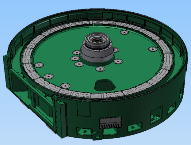 2. Obrotowy stół roboczy napędzany jest wieloma serwomotorami: podczas toczenia wszystkie silniki obracają się w tym samym kierunku, aby osiągnąć superpozycję mocy, zapewniając wysoki moment obrotowy i cięcie o dużej mocy; podczas frezowania wykorzystywane jest sterowanie master-slave wielu silników w celu elektronicznej eliminacji luzów, gwarantując wysoką dokładność pozycjonowania obrotowego.